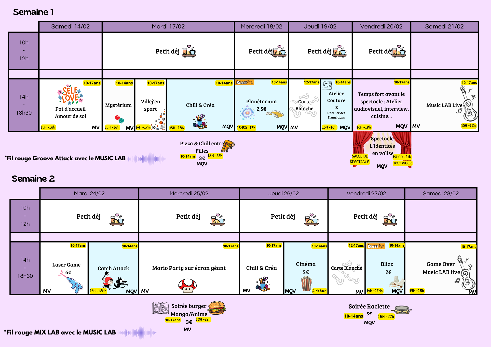 >>> La Cave à Musique sera ouverte pendant les vacances en fonction du programme d’activités.